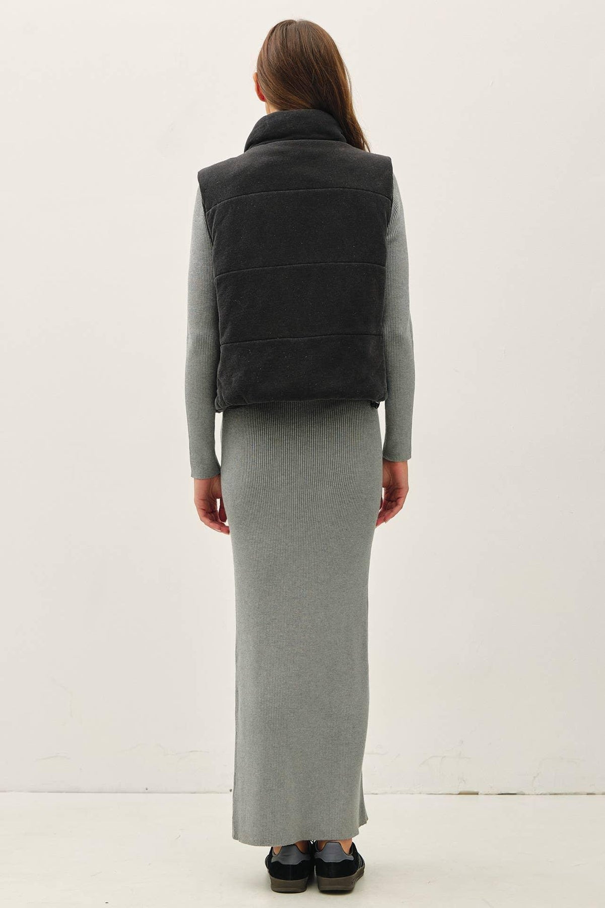 DENIM FEEL VINTAGE WASHING ZIP UP PUFFER VEST