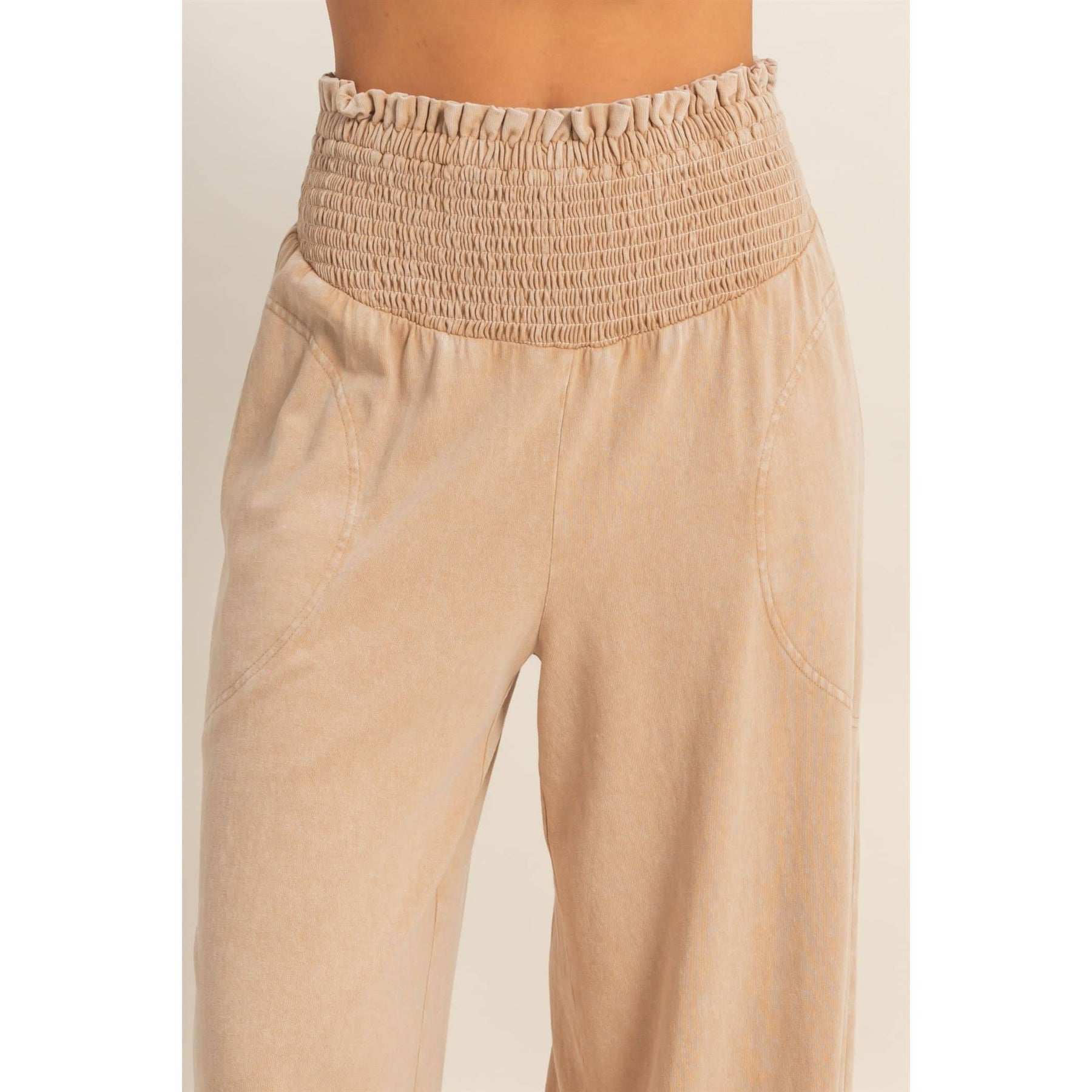 Mineral Washed Wide-Leg Smocked Waist Pants