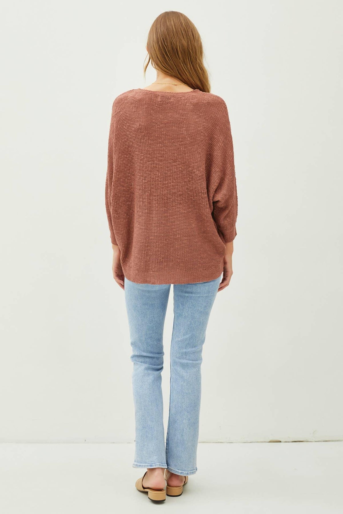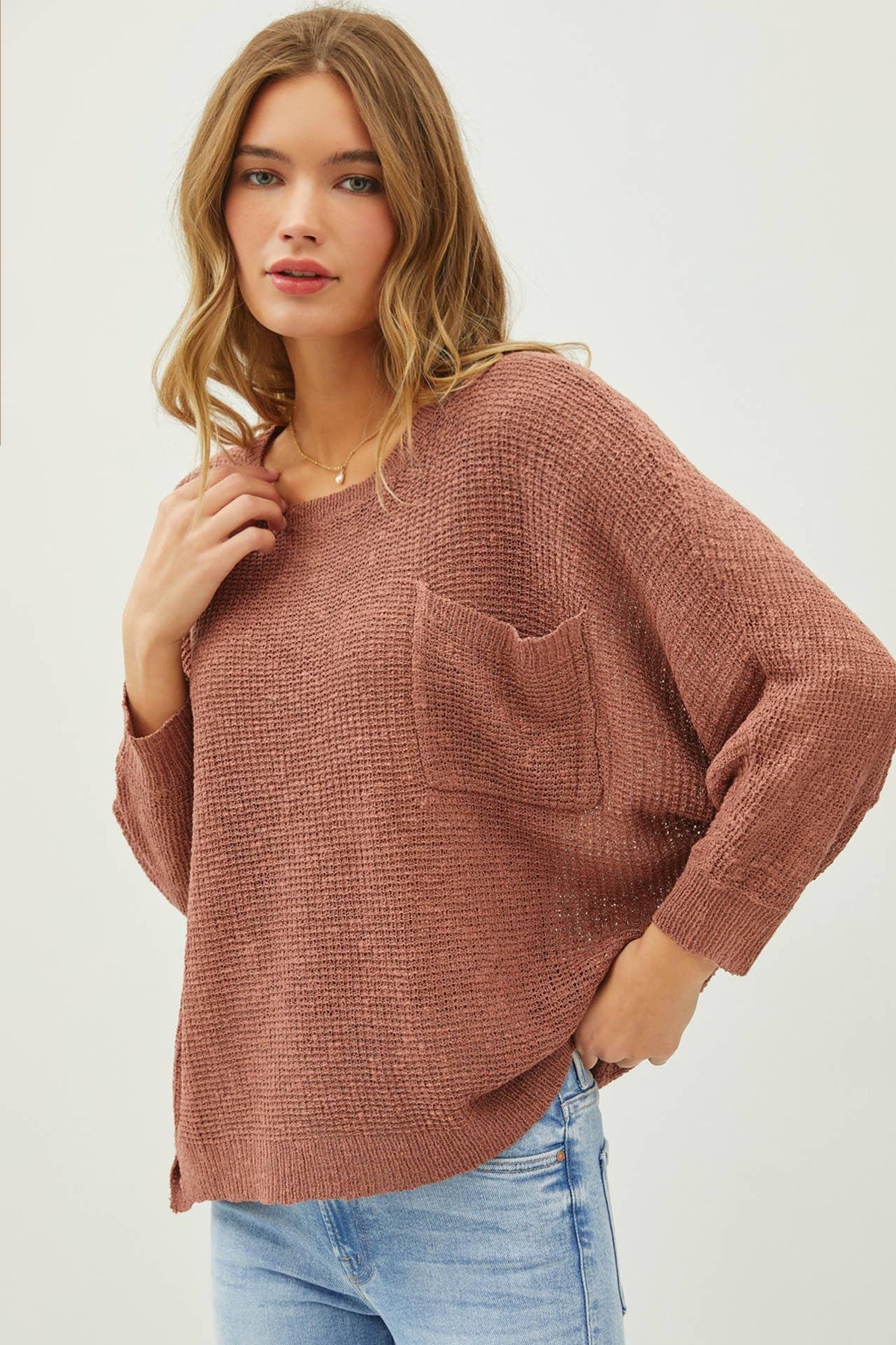 FRONT POCKET DOLMAN LONG SLEEVE KNIT SWEATER