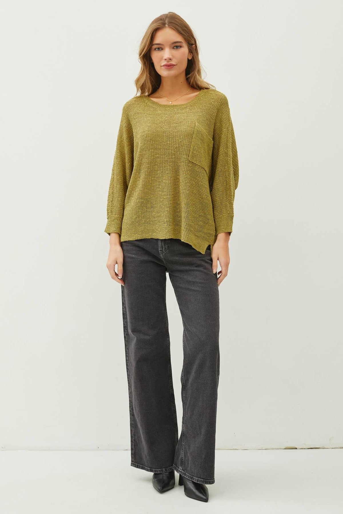 Women's Sweaters - FRONT POCKET DOLMAN LONG SLEEVE KNIT SWEATER - Sage - Cultured Cloths Apparel