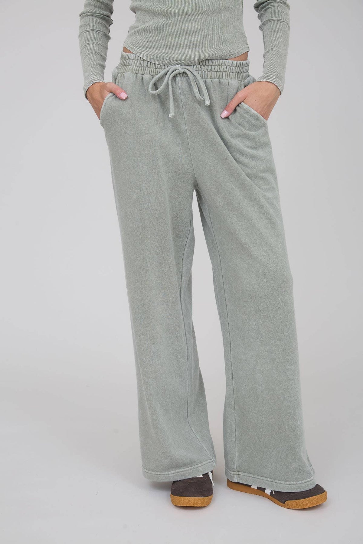 WASHED WIDE LEG DRAWSTRING LOUNGE PANTS