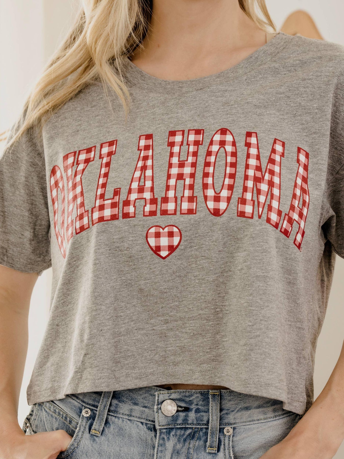 OU Oklahoma Sooners Gingham Heart Gray Cropped Tee