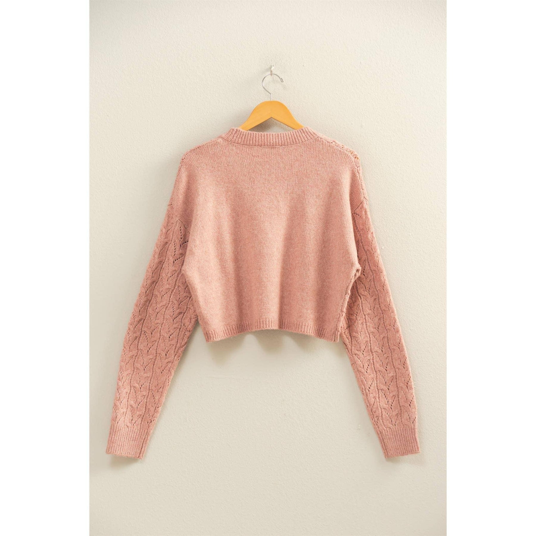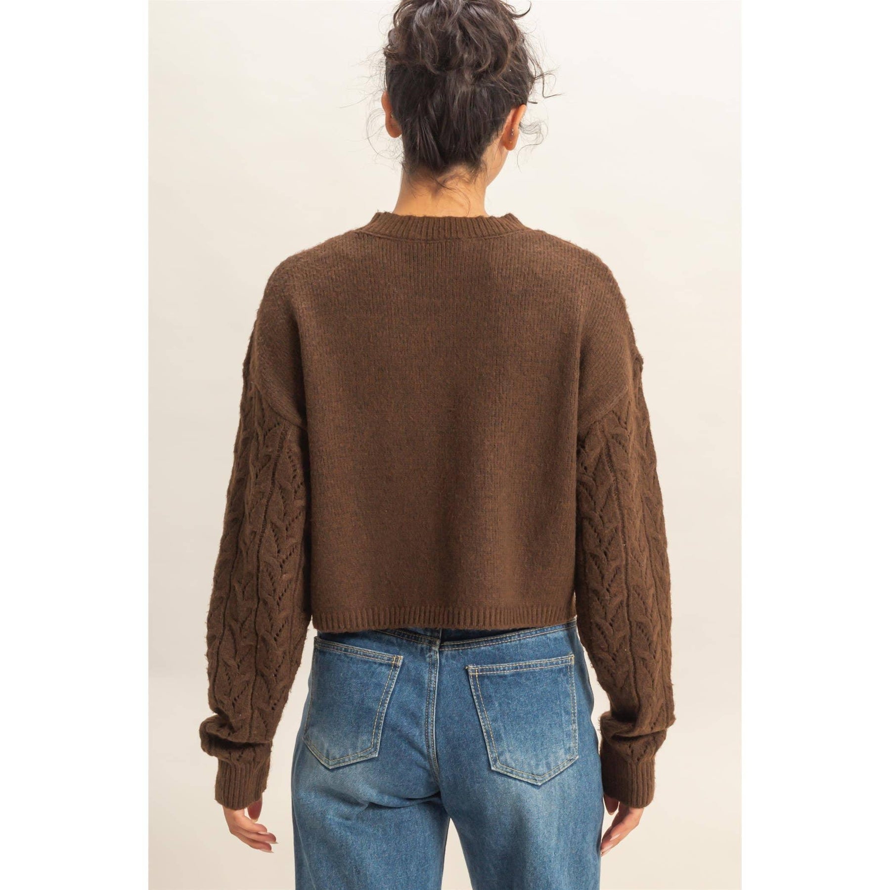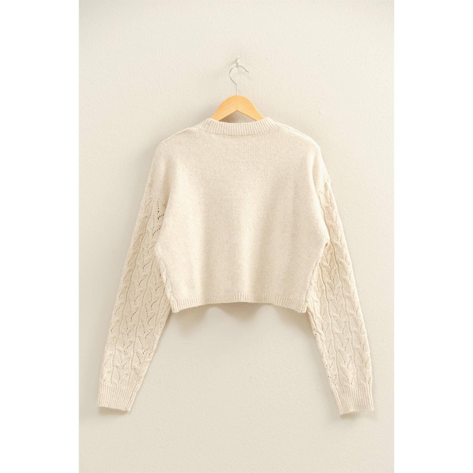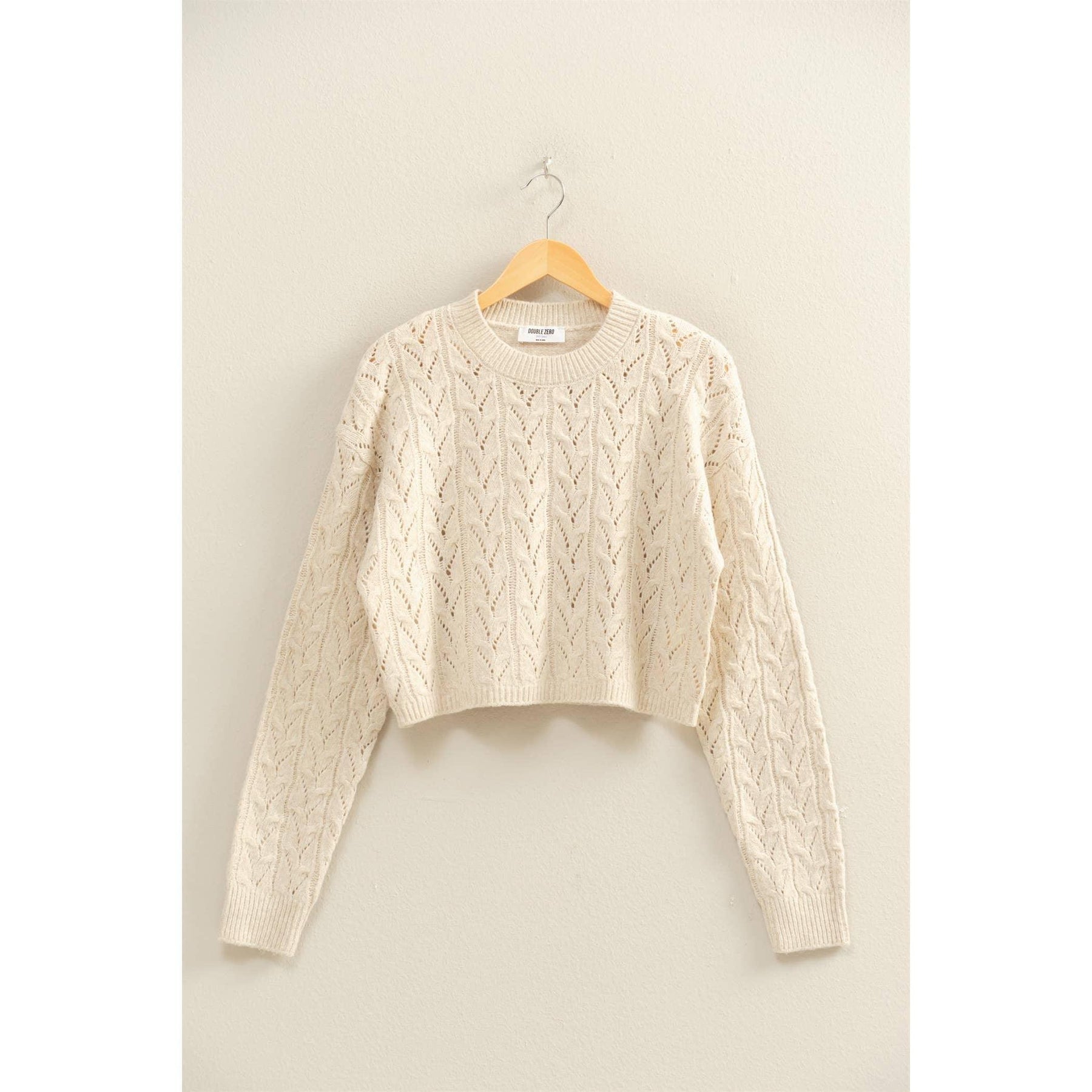 Women's Sweaters - Cropped Cable Knit Sweater - - Cultured Cloths Apparel