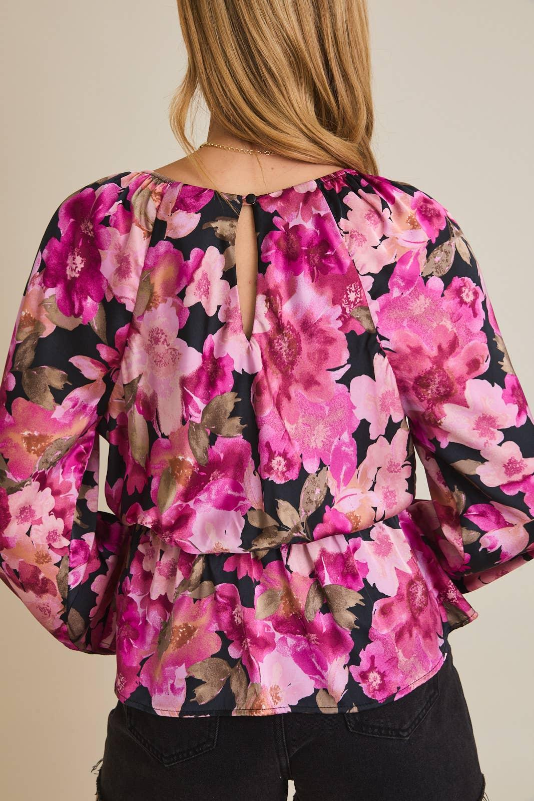 LONG SLEEVE SURPLICE PEPPLUM TOP