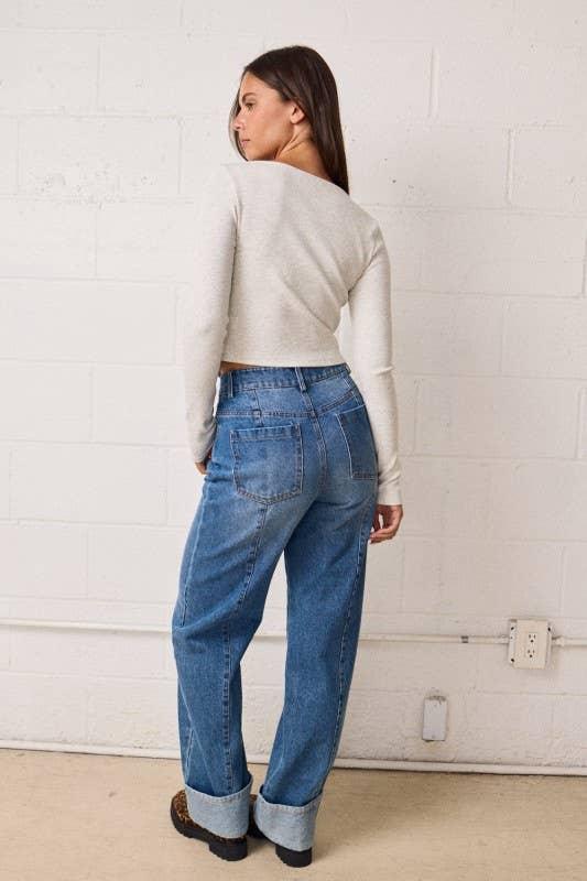 Ribbed stretchy fitted ls lacey n-neck top,-ribbed texture for a cozy & snug fit, -scalloped trim detail, -long sleeves, -cropped length, -hook & eye closure, -top , , model's height is 5' 8" and wearing a size S