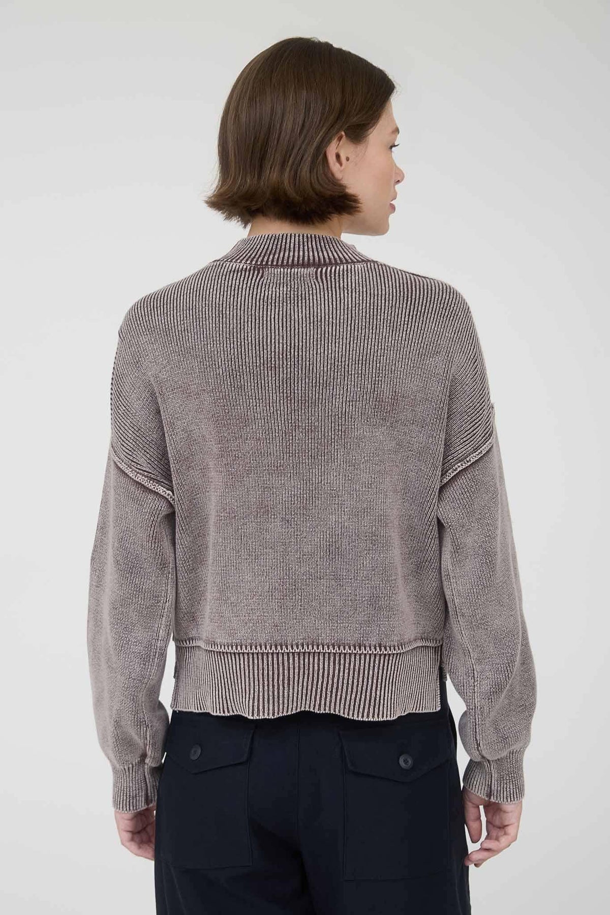 Women's Sweaters - WASHED MOCK NECK LONG SLEEVE KNIT PULLOVER SWEATER - PLUM - Cultured Cloths Apparel
