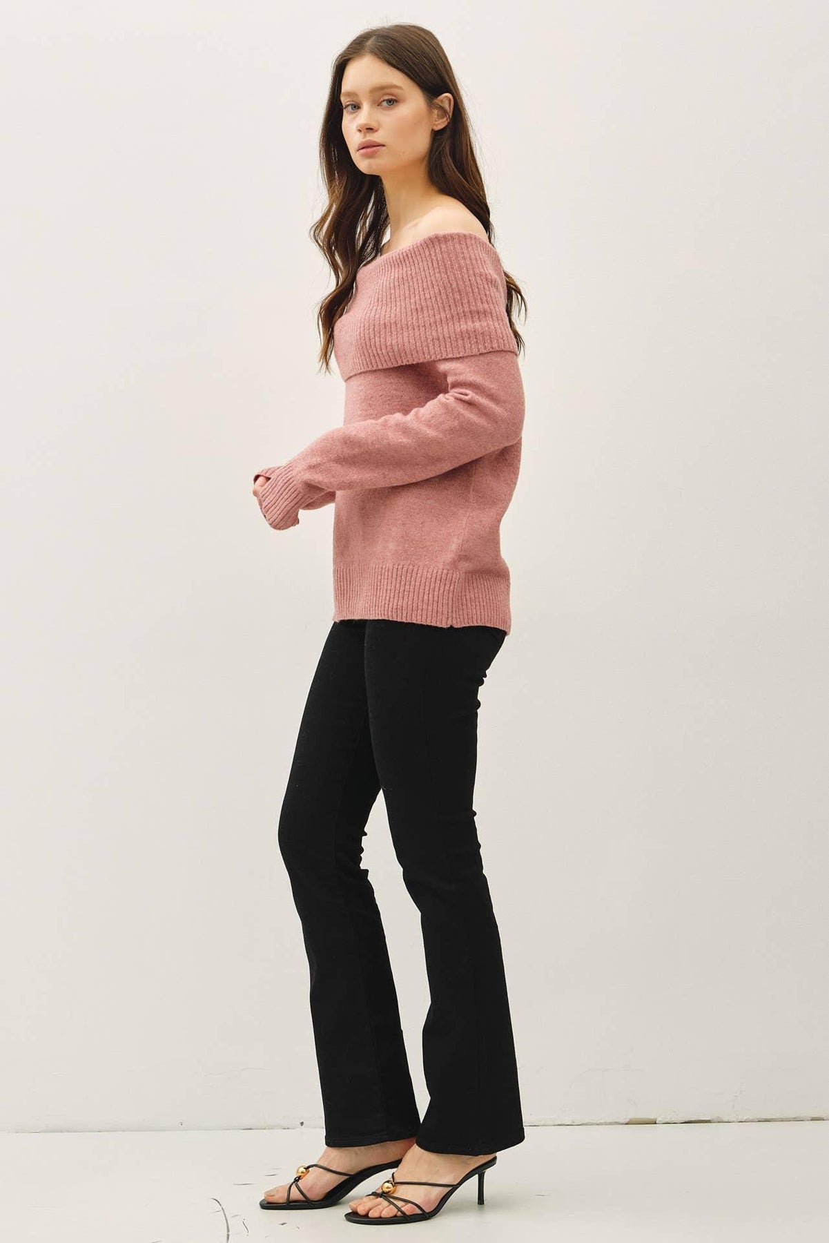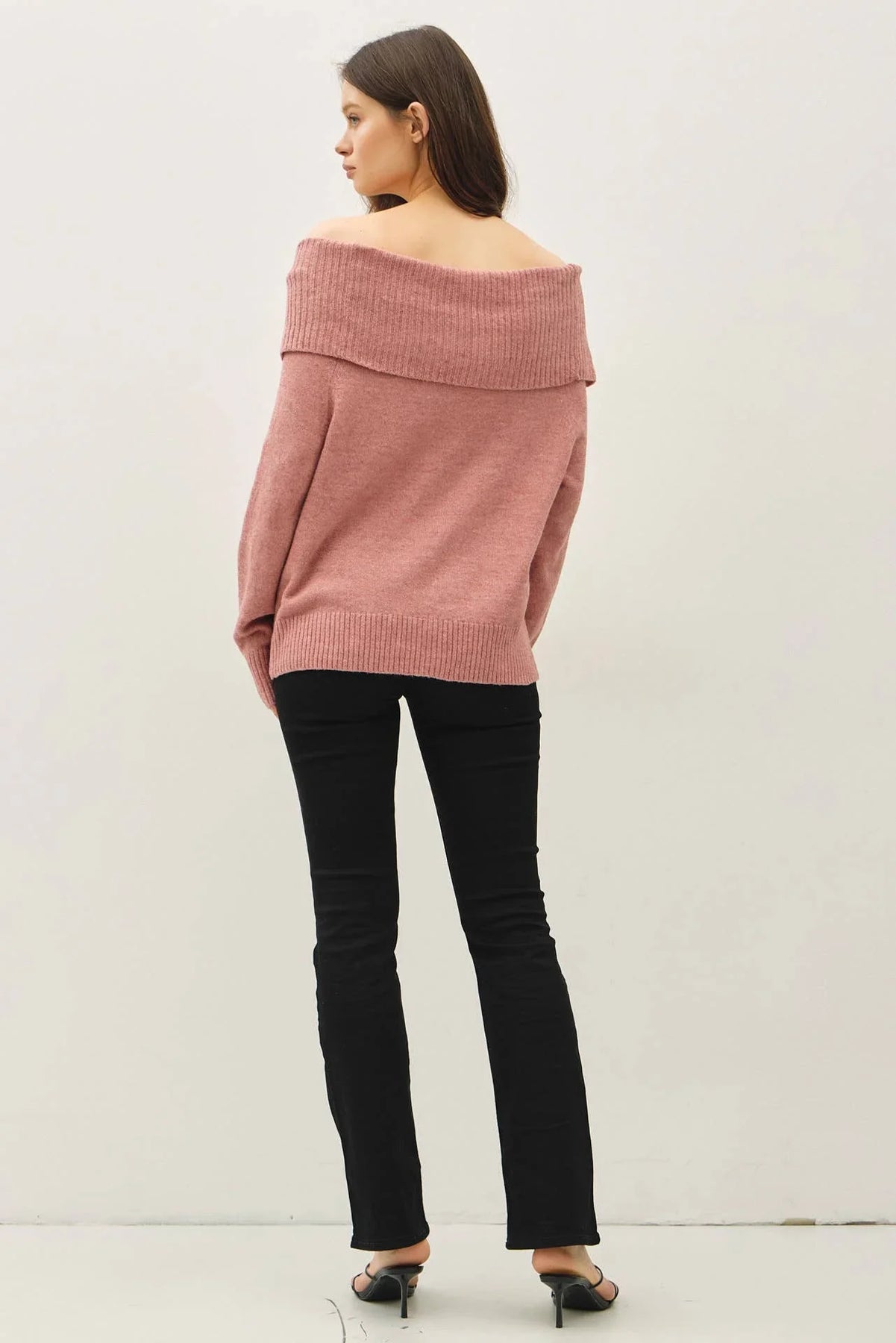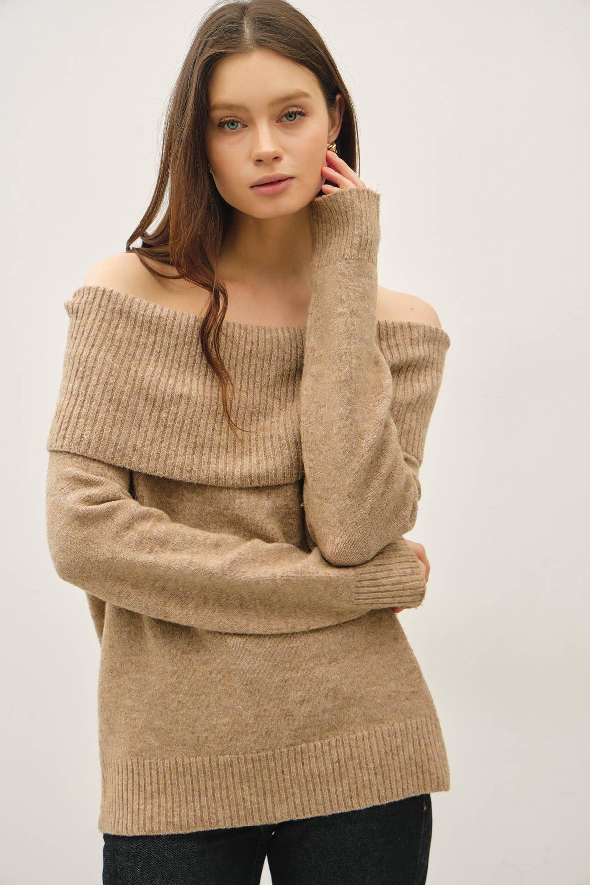 ROLL OVER OFF THE SHOULDER WOOL BLEND SWEATER