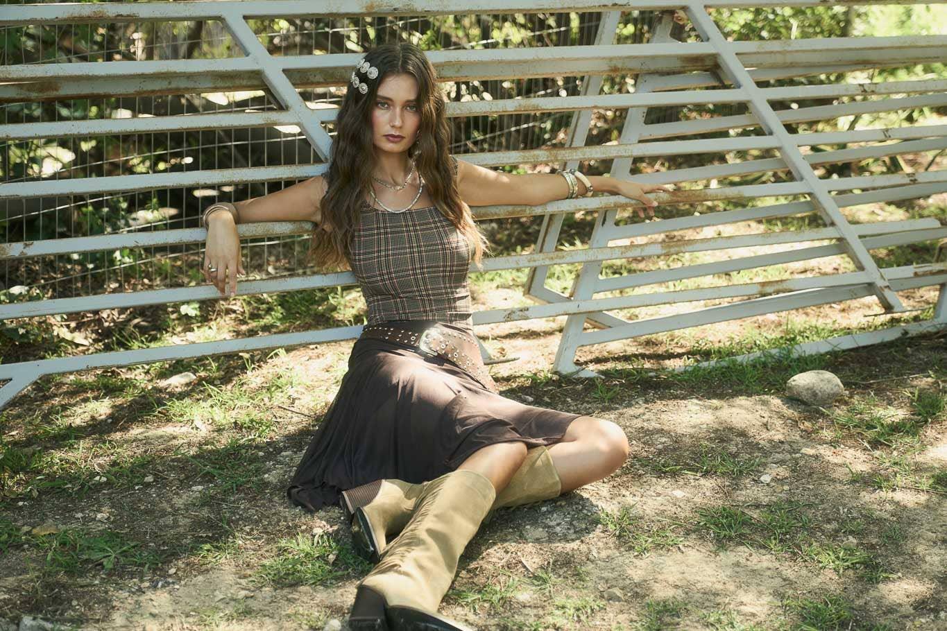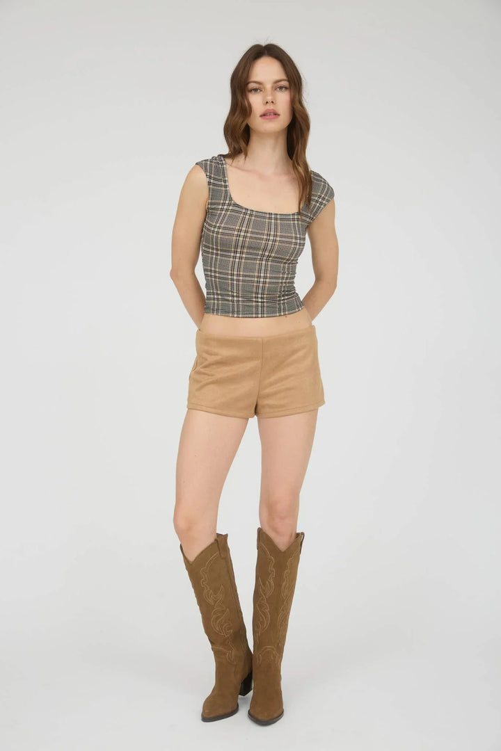 Women's Short Sleeve - PLAID SHORT SLEEVE KNIT TOP - CAMEL MULTI - Cultured Cloths Apparel