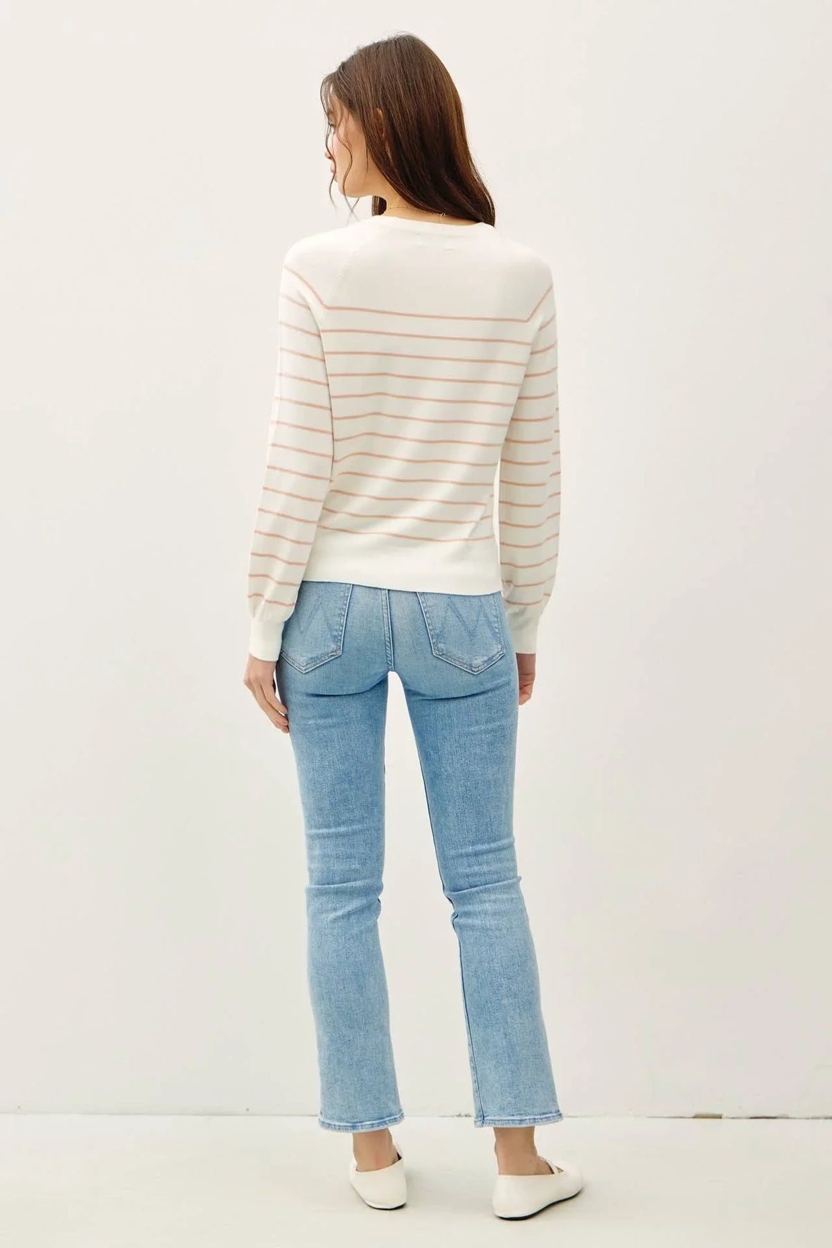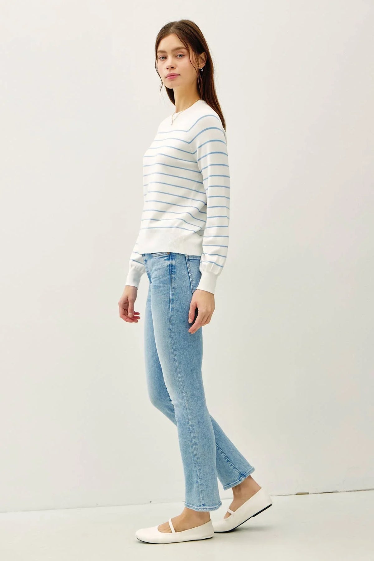 LIGHTWEIGHT, STRIPED, LONGSLEEVE SWEATER TOP W/ SLIGHT BALLOON SLEEVE