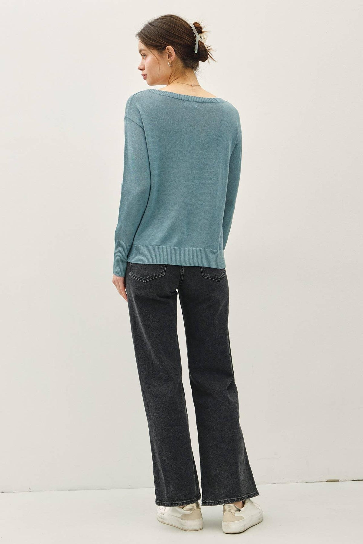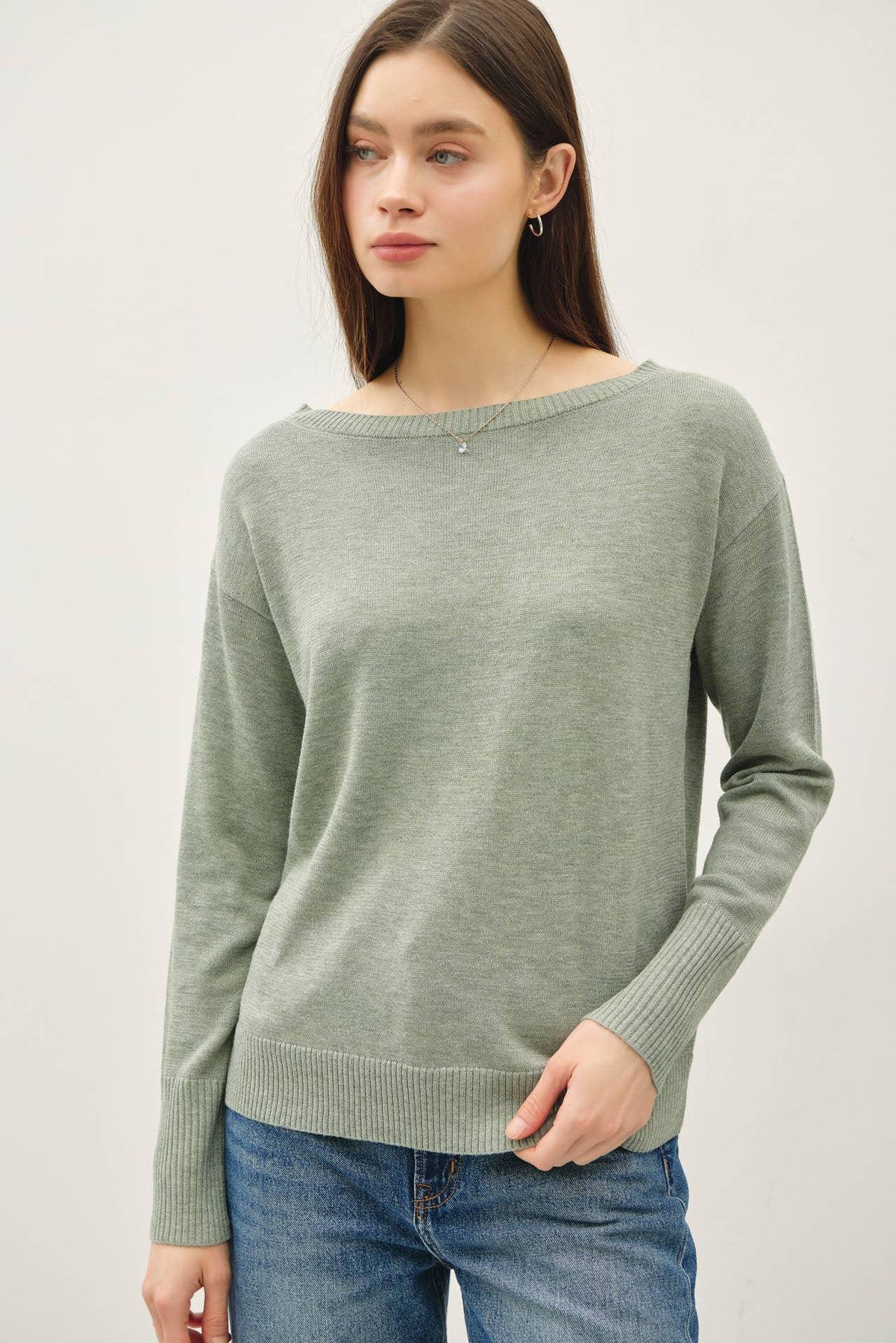 WOOL BLENDED ULTRA SOFT BOAT NECK BASIC SWEATER