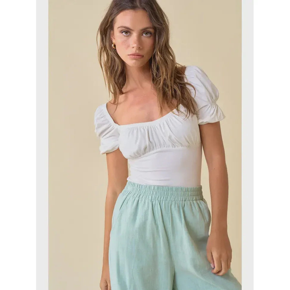Ruched Puff Sleeve Bodysuit